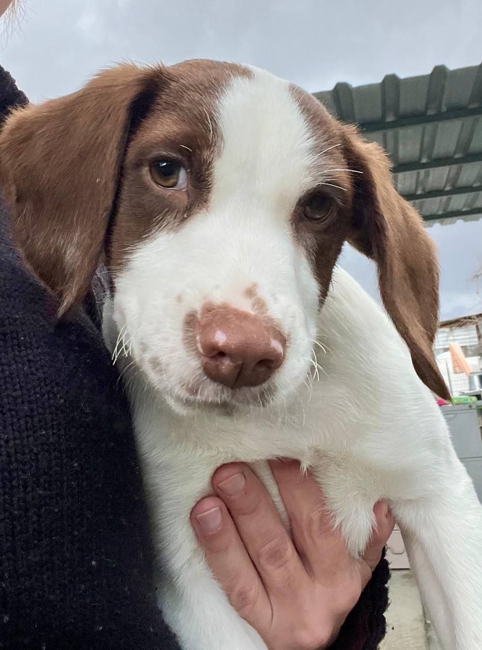 Rocco ist ein junger Mischlingsrüde, geboren im Oktober 2025. Mit seinem weißen Fell und den braunen Abzeichen ist er ein echter Hingucker – lebendig, charmant und voller Persönlichkeit. Er wurde gemeinsam mit seinen beiden Schwestern im Dezember gefunden und lebt nun im Roberts Shelter, wo er sich bestens eingelebt hat.