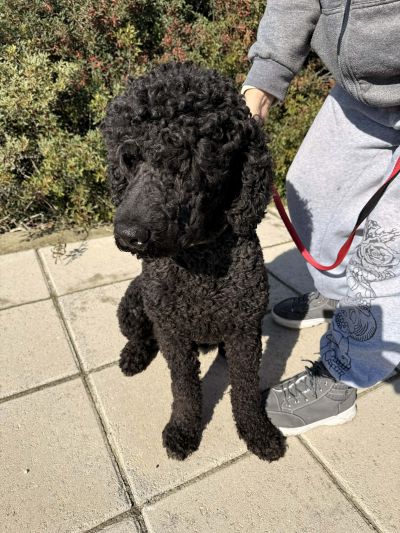 Rony ist ein stattlicher Rüde - es wird geschätzt, dass er ein portugiesischer Wasserhund ist. Von seinem Aussehen her könnte er jedoch auch ein Großpudel sein. Er ist im Mai 2022 geboren, hat tiefschwarzes, dichtes Lockenfell und ist mit seinen 30kg und 60 cm Schulterhöhe ein stattlicher Kerl.