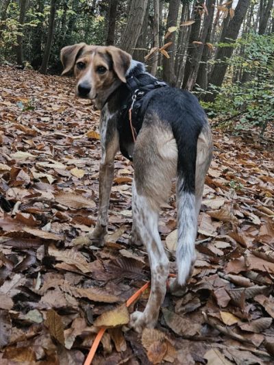 Bei Hundebegegnungen orientiert sie sich bereits schön am Menschen und läuft, trotz leichter Unsicherheit, freundlich und ruhig vorbei. Neuen Umwelteinflüssen begegnet sie neugierig und interessiert – man merkt, dass sie bereit ist, die Welt zu entdecken.