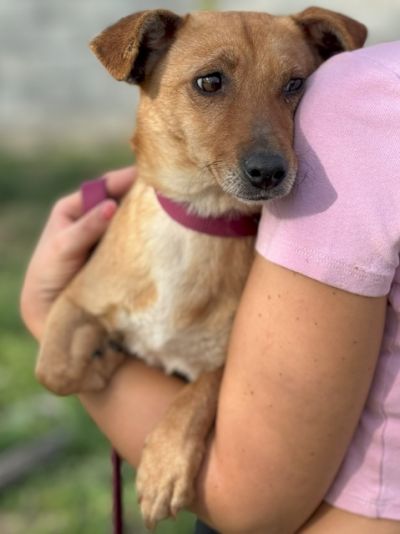 Jetzt lebt sie mit vielen anderen Hunden im Shelter. Sie ist freundlich und offen, doch auch ruhig und ein wenig schüchtern.