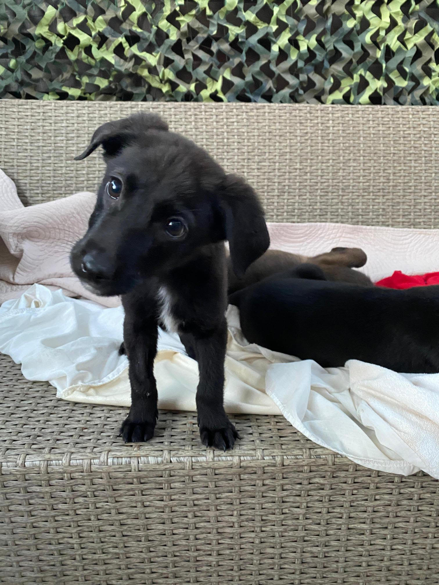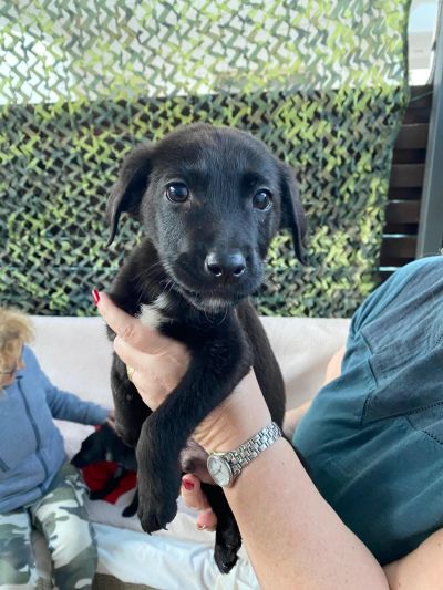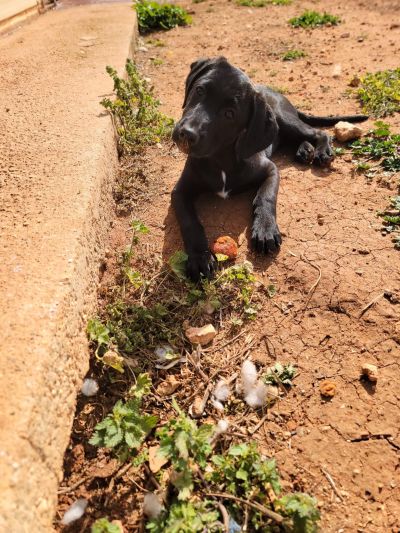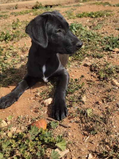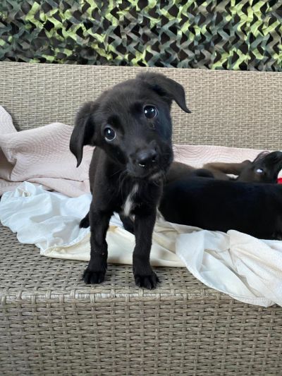 Antonis ist vermutlich ein Labrador-Pinscher-Mix mit einem auffälligen schwarz-weißen Fell, das ihn in der Menge hervorhebt. Mit einer Schulterhöhe von 25 cm und einem Gewicht von 5,1 kg ist Antonis der kleinste der Brüder - in der Zeit bei der Pflegestelle hat er sich aber bereits gut gemacht und ist kräftiger geworden. Er spielt munter mit seinen Geschwistern, liebt es voller Energie durch die Gegend zu toben und genießt die Zeit in seiner Pflegefamilie.
