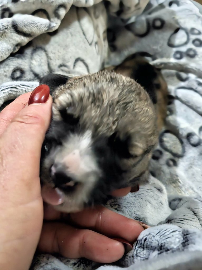 Sofort stoppten sie und entdeckten eine schwarze Plastiktüte am Straßenrand. Darin lagen zwei neugeborene Welpen – einer war der Kälte bereits zum Opfer gefallen. Doch Ares lebte. Ohne zu zögern nahm Viki ihn mit nach Hause.