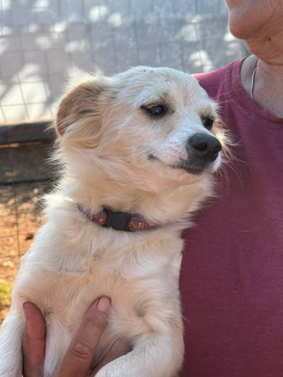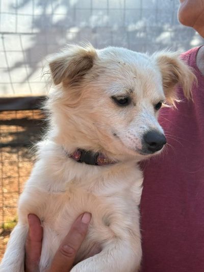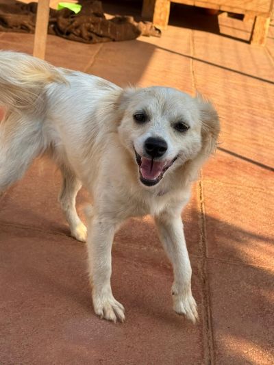 Aria ist eine junge Kokoni-Mix-Hündin, die im August aus dem städtischen Tierheim gerettet wurde. Seitdem lebt sie bei Rita, wo sie sich langsam an ein sicheres Leben gewöhnt. Sie ist etwa 9 Monate alt und 32 cm hoch, hat langes, weiß glänzendes, weiches Fell und ein freundliches, aber zurückhaltendes Wesen.