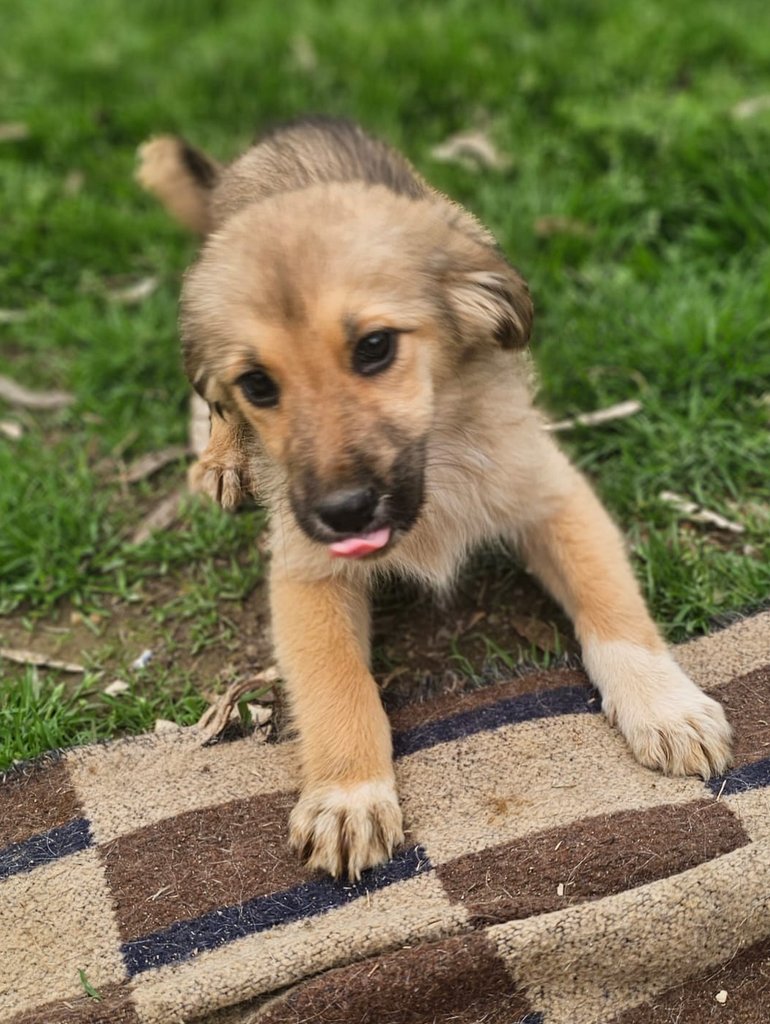 Die kleine Hündin spielt sehr gerne und erkundet mit ihren tapsigen Pfoten die große Welt. Sie folgt Viki überall hin – Aria ist einfach Niedlichkeit auf vier Beinen.