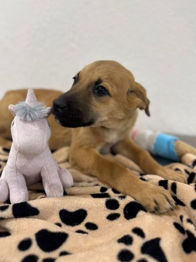 Dieses winzige Welpenmädchen hatte einen schweren Start ins Leben. Ihre tapfere Mama Artemis wurde hochschwanger an einer stark befahrenen Straße gefunden – völlig erschöpft und allein. Zwölf Welpen brachte sie zur Welt, drei davon haben es leider nicht geschafft. Unsere Kleine gehört zu den Kämpfern, die trotz aller Umstände ihren Weg ins Leben gefunden haben.