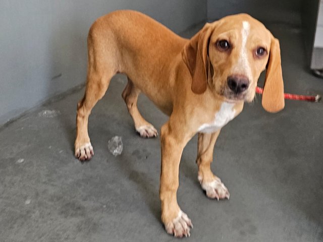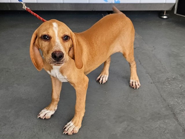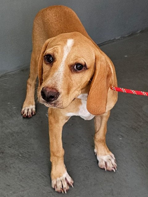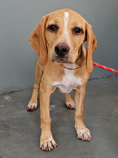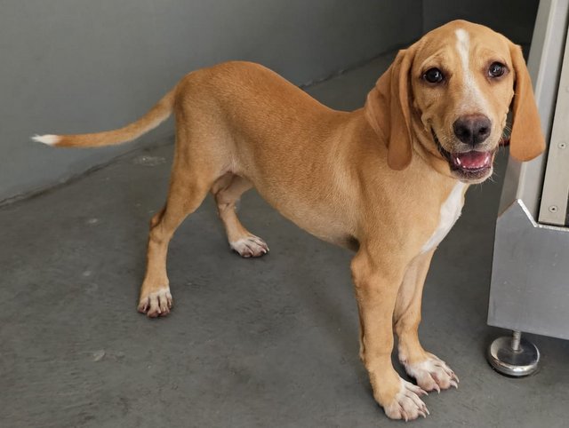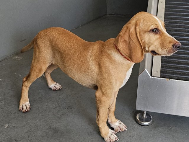 Babsi ist eine so hübsche Maus mit diesen langen Ohren einfach Zucker. Die Welt da draußen kennt sie noch nicht, nur den Käfig und das Spielen mit ihren Geschwistern. Die Frau die kommt um zu füttern und die Welpen mal kurz knuddelt, wird freudig begrüßt, denn das ist etwas Abwechslung im tristen Käfigleben. Babsi wird einmal ein mittelgroßer Hund werden.