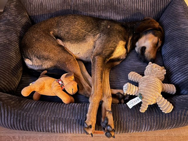 Bailey entwickelt sich ganz wunderbar. Jeden Tag wird er ein bisschen mutiger und er kann immer besser entspannen. Er muss noch etwas aus sich herauskommen, aber wir können jetzt schon sagen, dass er ein Traumhund ist, wenn er Menschen findet, die Verständnis und Gefallen an sanften/sensiblen Hunden haben und ihn in Ruhe ankommen lassen.