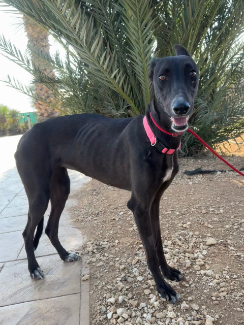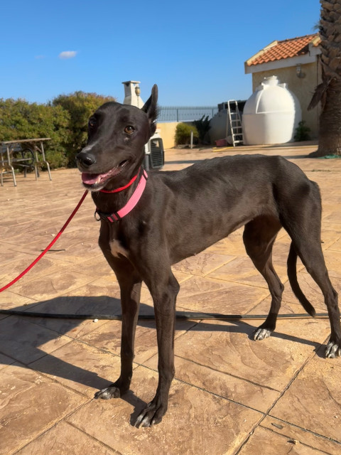 Bambi wurde von Lorraine gefunden, als sie mit ihren Hunden spazieren ging. Sie war ein wandelndes Skelett und hatte nicht einmal mehr die Kraft aufzustehen. Die Tierschützer brachten sie sofort zum Tierarzt. Sie musste eine Bluttransfusion bekommen und hat zum Glück überlebt. Sie blieb 5 Wochen lang beim Tierarzt. Jetzt hat sie langsam wieder zugenommen und ist eine fröhliche und lebhafte junge Hündin.