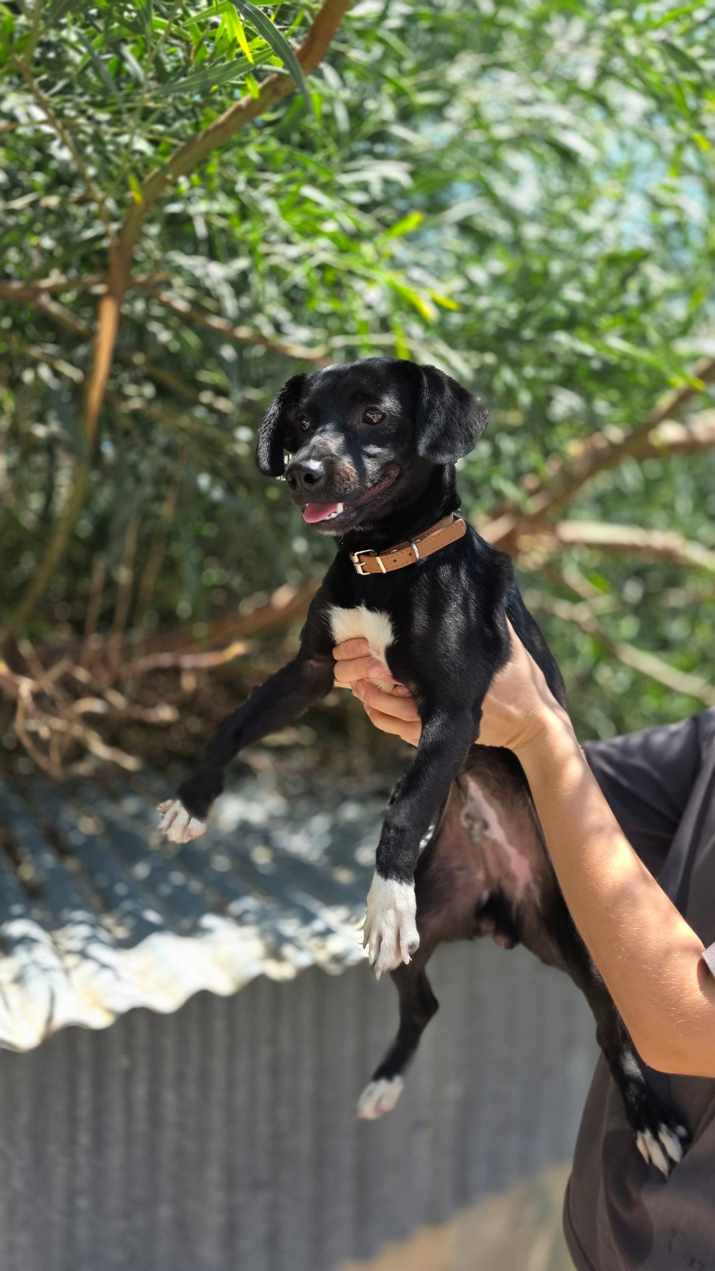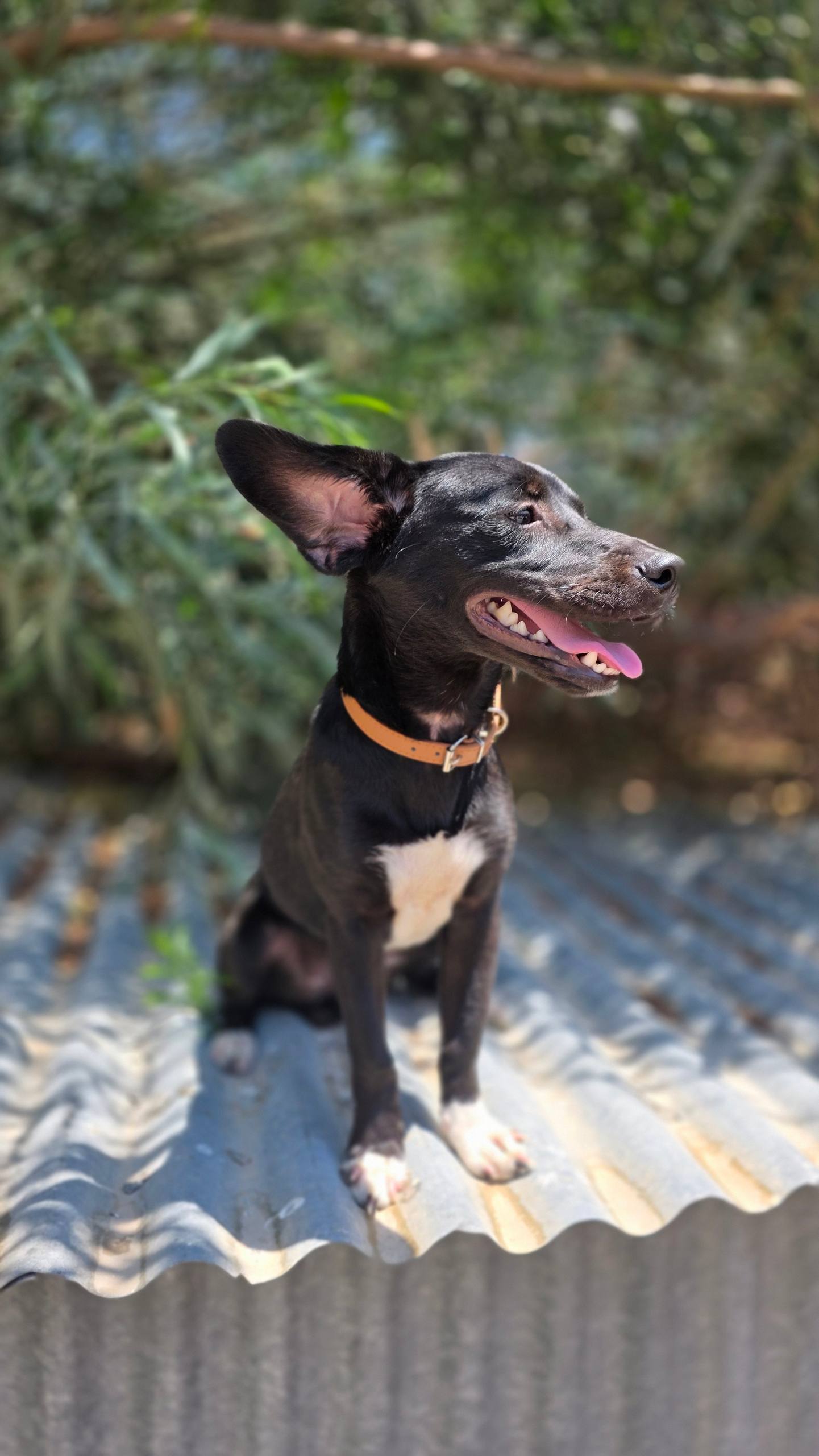 Banksy trägt nicht nur den Namen eines berühmten Street-Art-Künstlers – er ist selbst ein kleines Kunstwerk auf vier Pfoten. Mit seinem glänzenden schwarzen Fell, den weißen Pfötchen und der zarten Brust ist er ein Bild von einem Hund. Und sein Blick? Wach, aufmerksam und voller Vertrauen – als würde er direkt in Ihr Herz schauen.
