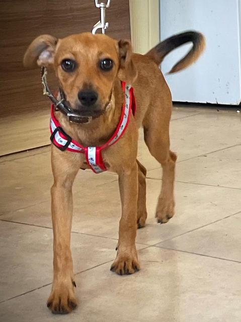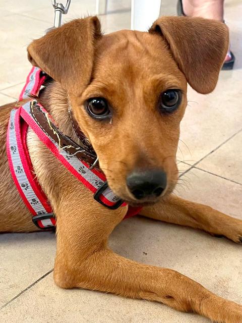 Sie ist eine eher ruhige Welpin, aber sehr offen und neugierig. Ab dem 4.7. dürfte sie nach Deutschland fliegen, sollte sie bis dahin eine ganz liebe Familie gefunden haben.