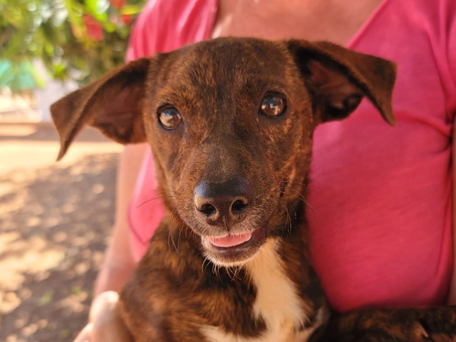 Die kleine Beryl ist ein echter Herzenshund! Ihr kurzes, glänzendes Fell spiegelt ihre fröhliche und unkomplizierte Art perfekt wider. Sie ist ein aufgeweckter, verspielter Welpe mit einem sanften Wesen, das einfach jeden bezaubert. Beryl liebt es, mit den anderen Welpen und Menschen zu spielen – genauso gerne kuschelt sie sich aber auch auf den Schoß und genießt jede Streicheleinheit. Mit ihrer liebevollen Art wird sie ganz bestimmt ein wunderbarer Familienhund und eine treue Begleiterin fürs Leben.