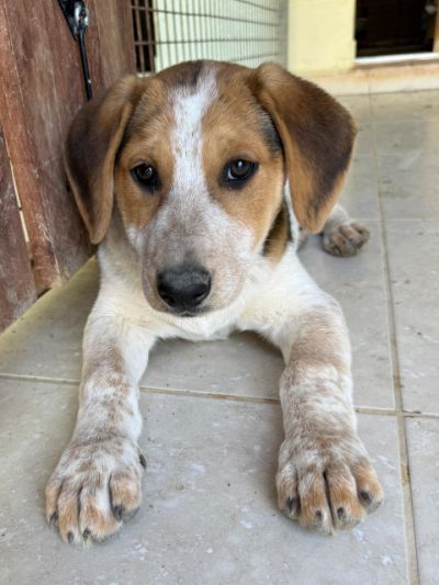 Bonnie ist ein wunderschönes dreifarbiges Welpenmädchen mit ausdrucksvollen Augen und einer aufgeweckten Neugier im Gesicht. Ihre entzückenden Schlappohren, ihr sanfter Blick und ihr ruhiges, aufmerksames Wesen lassen Herzen sofort dahinschmelzen. Sie ist liebevoll, anhänglich und genießt es sehr, in der Nähe ihrer Menschen zu sein und ihre Umgebung aufmerksam zu beobachten. Gleichzeitig zeigt sie sich verspielt und neugierig. Bonnie hat ein welpentypisch aufgeweckstes Gemüt und eine verschmuste, liebevolle Art, die Herzen im Sturm erobert. In ihr schlummert jede Menge Potenzial – und wir sind sicher: In ihrem eigenen Zuhause wird sie richtig aufblühen und zeigen, dass in ihr mehr Pfeffer steckt, als man auf den ersten Blick ahnt.