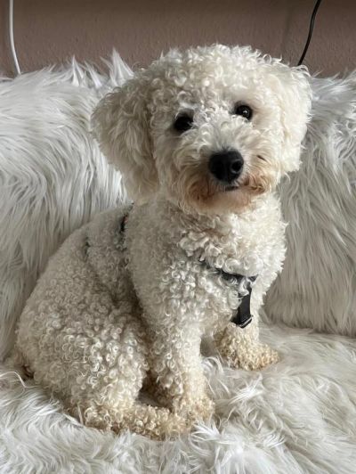 Er hat keine Erziehung genossen, eine Hundeschule ist somit angeraten. Er fährt gerne mit im Auto und ist absolut gutartig. Sein Fell ist ganz weich und sehr lockig und haart natürlich nicht.
