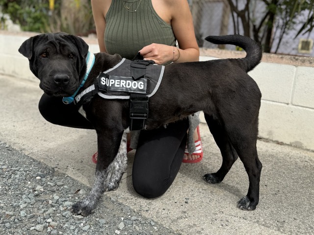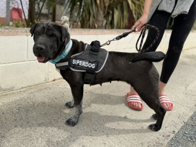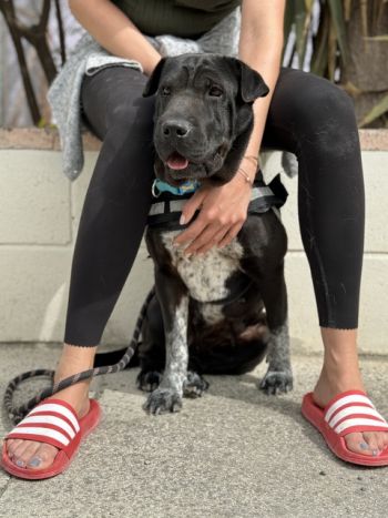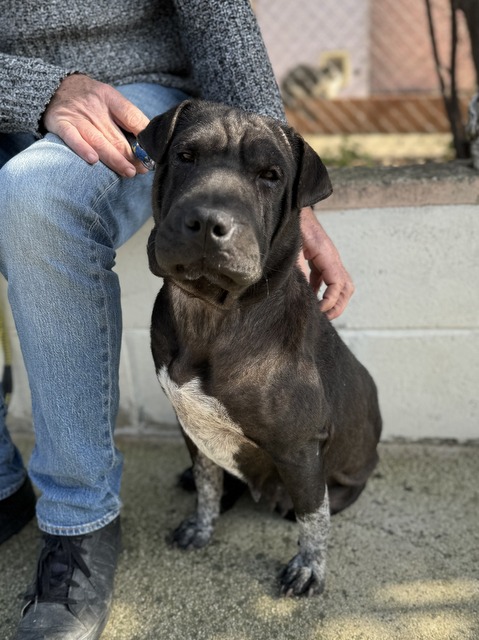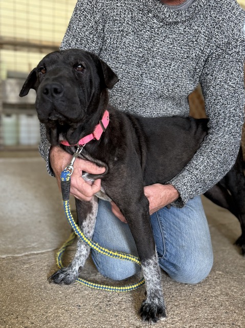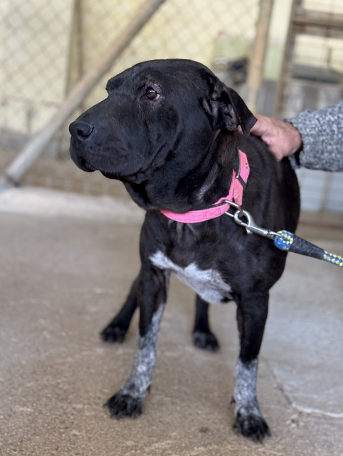 Brita ist eine mittelgroße Hündin und hat mehr Pointer als Shar Pei in sich. Sie hat ein sehr freundliches Wesen, liebt menschliche Gesellschaft, ist kein lauter Hund, geht gut an der Leine und versteht sich mit anderen Hunden.