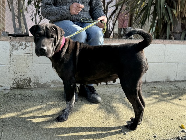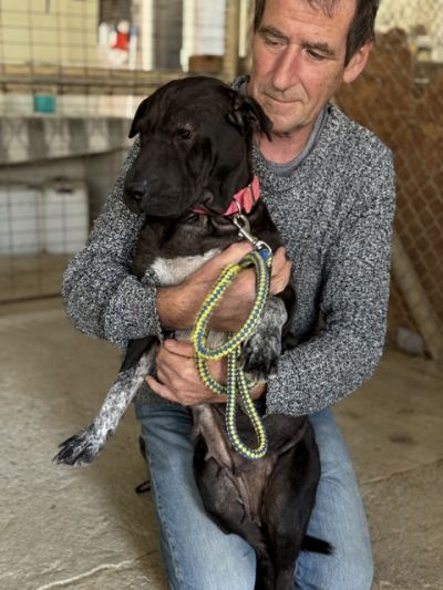 Brita - eine nette Hündin - gehörte einer Familie, die sie ausgesetzt hat. Während sie auf der Straße lebte, wurde sie trächtig und brachte im November 2023 auf einem Feld 5 Welpen zur Welt. Brita wurde bei einem Autounfall verletzt und wurde von einer Frau, die den Unfall gesehen hatte zu ihrem Tierarzt gebracht. Der Tierarzt machte eine Röntgenaufnahme und stellte fest, dass sie eine gebrochene Hüfte hatte. Da er viel Geld für die Operation verlangte, rief die Freiwillige Helferin beim Argos Tierheim an und fragte, ob wir sie aufnehmen könnten. Am 12.4.2023 holten wir Brita bei ihrem Tierarzt ab und brachten sie für die Operation zu unserem Tierarzt. Sie ist bei guter Gesundheit und läuft ohne Probleme.