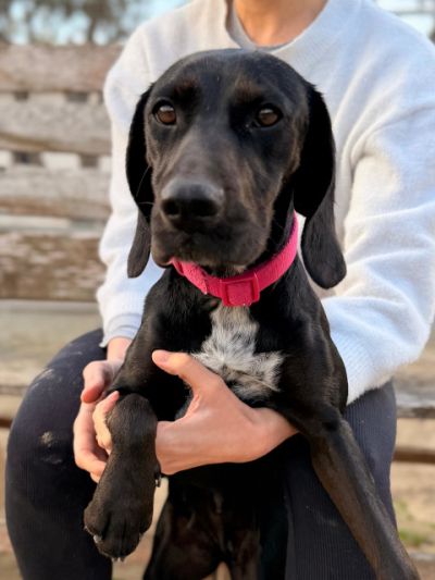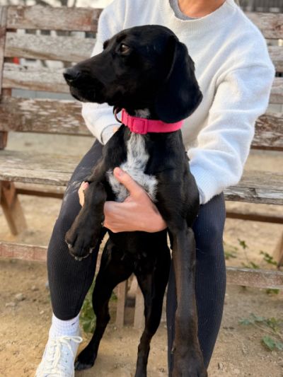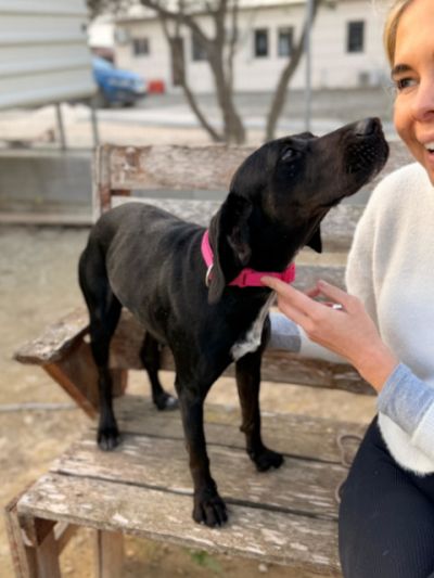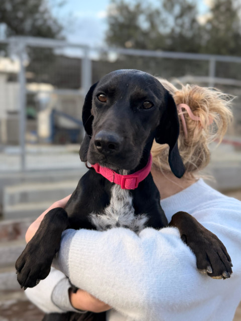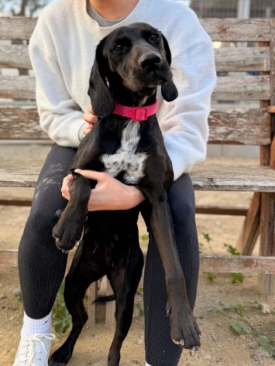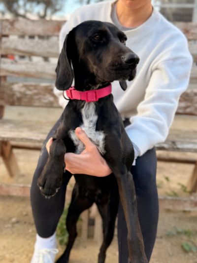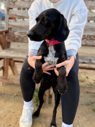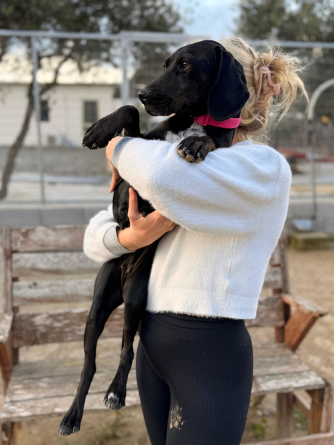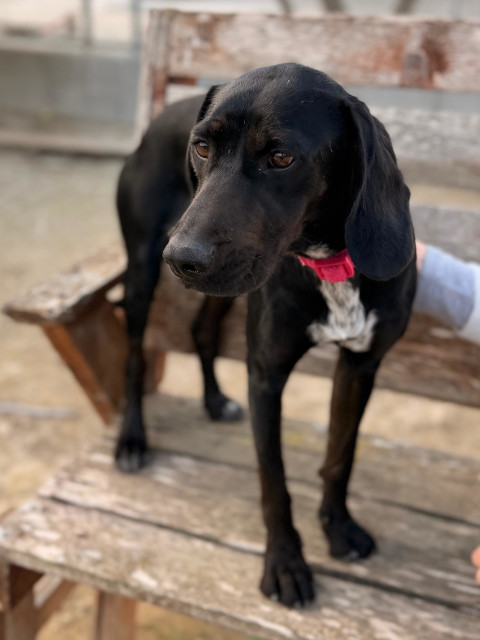 Trotz dieses schwierigen Starts ins Leben hat Bueno ihr sanftes und liebevolles Wesen bewahrt. Sie ist eine sehr anhängliche Hündin, die die Gesellschaft von Menschen und die Nähe zu vertrauten Personen sehr genießt. Fremden gegenüber ist sie anfangs noch etwas schüchtern, doch sobald sie Vertrauen gefasst hat, zeigt sie ihre ganze liebevolle und verschmuste Persönlichkeit. Bueno ist eine wunderschöne junge Hündin mit kurzem, gesund glänzendem schwarzen Fell und hübschen weißen Abzeichen auf der Brust. Ihr freundlicher Blick und ihr sanfter Charakter machen sie zu einer ganz besonderen Begleiterin.