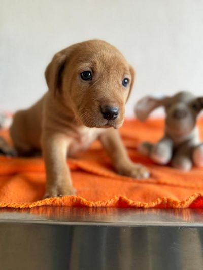 Kaum kann man sich vorstellen, dass aus diesen dicken Dropsen mal stattliche Hunde werden, doch der Tierarzt meinte, dass sie wohl labradorgroß werden.