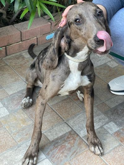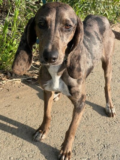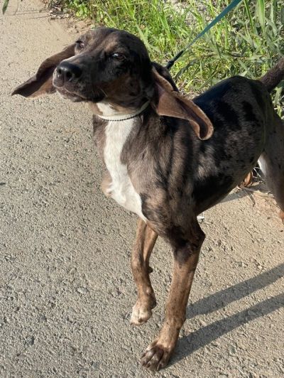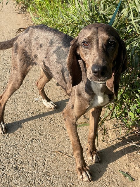 Christy ist ein freundlicher, netter und sanfter junger Hund. Sie geht gerne draußen spazieren und beschnüffelt alles. Sie ist freundlich mit allen und hat Angst vor den Katzen. Sie geht gut an der Leine. Der Vorbesitzer hat sie wahrscheinlich zur Jagd mitgenommen, weil sie an der Leine zieht, wenn ein Auto mit Doppeldecker (das wird von den Jägern dort genutzt) vorbeifährt.Sie ist aktuell untergewichtig und hat ein bisschen Husten. Es ist aktuell auf Zypern kalt und regnerisch, aber diese "Problemchen" lassen sich alle beheben. Sobald sie ok ist, wird sie geimpft.