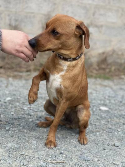 Er wiegt 10 kg mit einer Schulterhöhe von 44 cm. Ein mittelgroßer, ganz lieber Rüde, der jetzt Ihre Hilfe braucht.