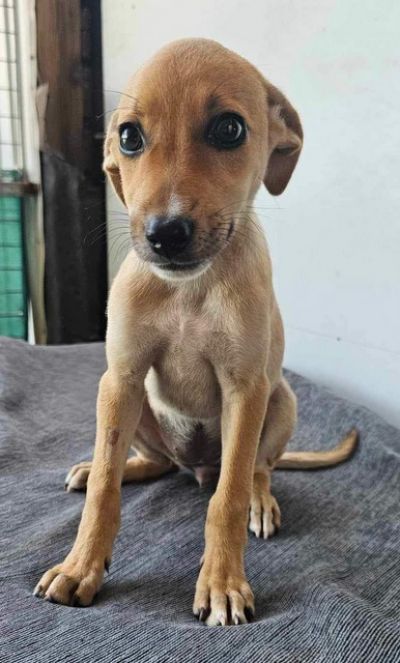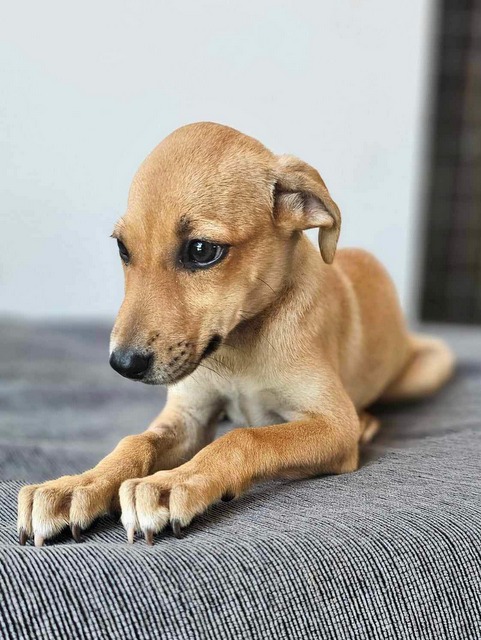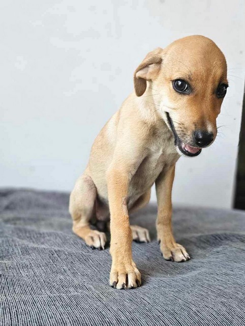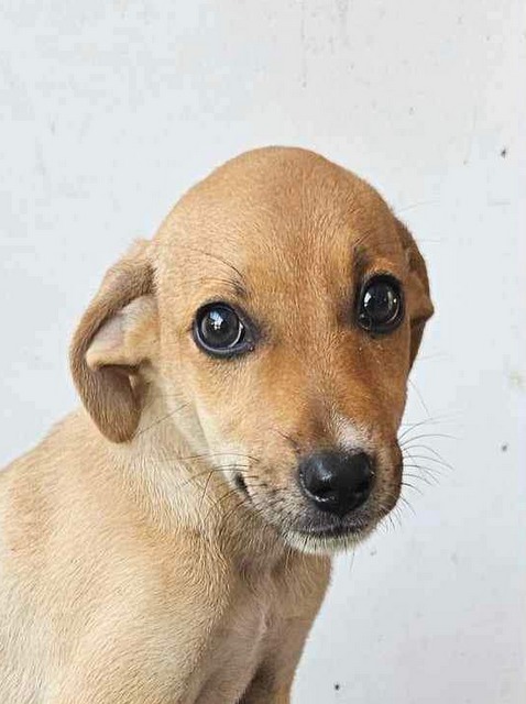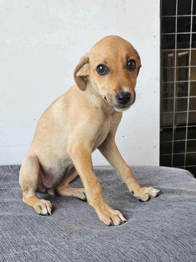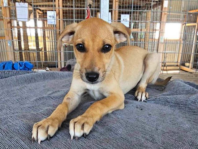 Clara - eine von 3 Welpen, die bei einer öffentlichen Kirche gefunden wurden. Sie waren bei dem heißen Wetter wie Müll weggeworfen worden und drohten zu dehydrieren. Jetzt sind die drei Mädels im Paralimni Dog Pound und warten auf ihre Familien.
