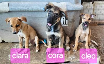 Jeder dieser Welpen war gestresst, als sie ankamen, aber jetzt haben sie sich gut eingelebt und sind sehr freundlich und verspielt. Jeder von ihnen ist ganz unterschiedlich, es muss also mehrere Väter gegeben haben. Clara ist die kleinste der Welpen und Kareen denkt, sie ist die süßeste der drei und diejenige, die am liebsten kuscheln möchte.