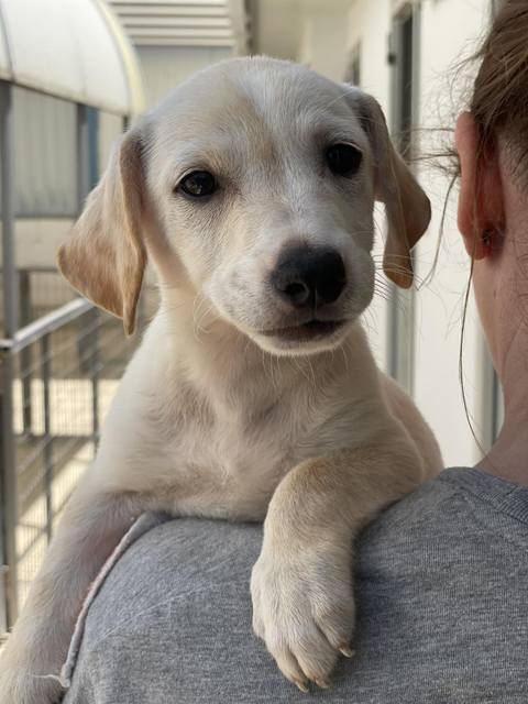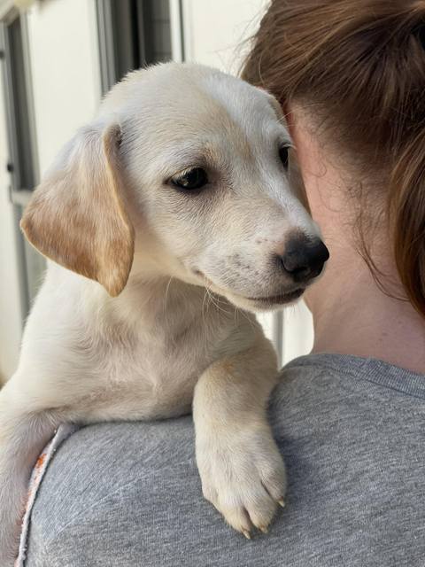 Daffy wurde mit seinen Geschwistern in der Nähe eines Hauses einer Frau gefunden. Man brachte sie zu Lana und jetzt leben sie bei ihr im Welpen-Kennel und sind zumindest sicher.
