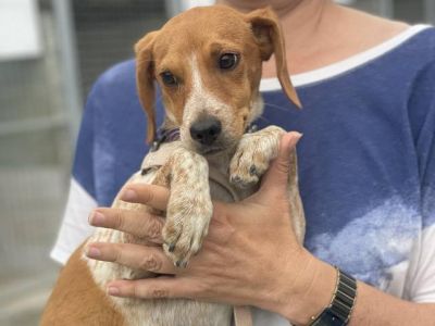 Dave und seine Geschwister wurden in einer Familie geboren, die Mutter ist eine Pinscher-Hündin, der Vater ist unbekannt. Die Welpen sind inzwischen 4 Monate alt und werden aktuell im Tierheim gut sozialisiert. Dave und sein Bruder sind im Moment noch schüchtern und verstehen noch nicht wirklich, was vor sich geht, aber sie sind sehr neugierig und lieben es herumzuschnüfflen. Dave wird ausgewachsen etwa 42cm Schulterhöhe haben. Im Tierheim wird nun mit ihnen das an der Leine Laufen geübt und sie werden weiter sozialisiert, bevor sie adoptiert werden.