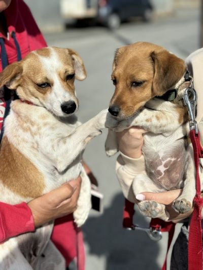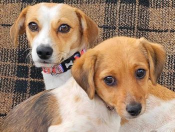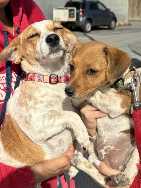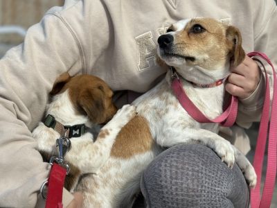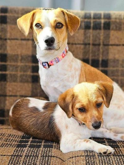 Dixie, 2 Jahre alt und ihre Welpin Pixie 3-4 Monate jung, können wir einfach nicht getrennt vermitteln.