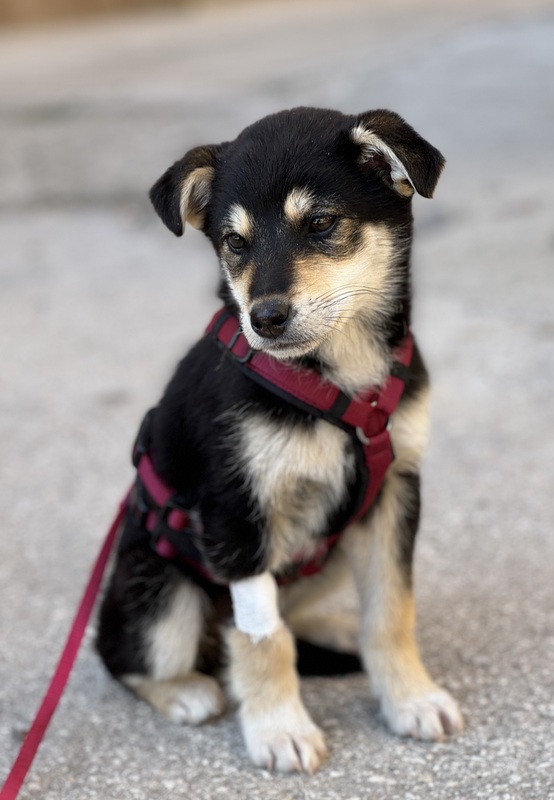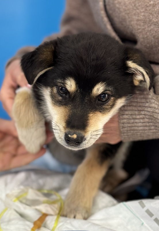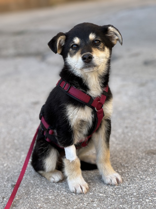 Sie fuhren mit dem Auto über eine viel befahrene Straße. Dort saß sie dann, eine Zaubermaus. Die beiden hielten sofort an, und versuchten die kleine Hündin zu retten. Das gestaltete sich als nicht so einfach. Aber nach langen Versuchen und unzähligen blutigen Kratzspuren von spitzen Dornen, konnten sie das Baby sichern. Wie selbstverständlich fuhr Dorn mit den beiden mit. Sie stellten die kleine Hündin bei einem Tierarzt vor.