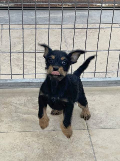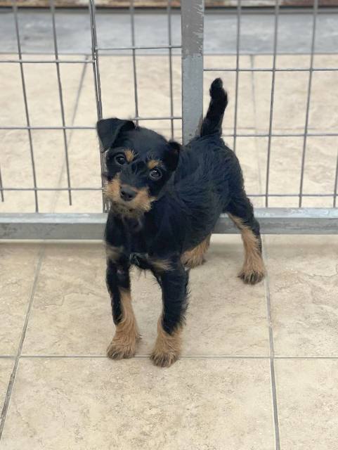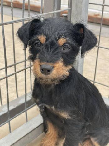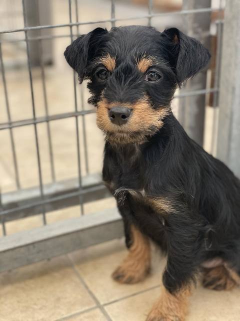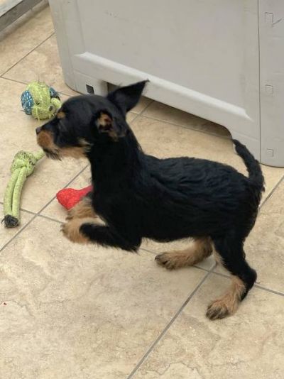 Edda ist ein bildhübscher Welpe, der wie ein kleiner Drahthaarterrier aussieht, ganz entzückend! Edda ist lebhaft und verspielt und sucht eine Familie die einen temperamentvollen Hund möchte. Sie wird einmal nicht so groß, wir schätzen so 35cm Schulterhöhe, wenn sie erwachsen ist.
