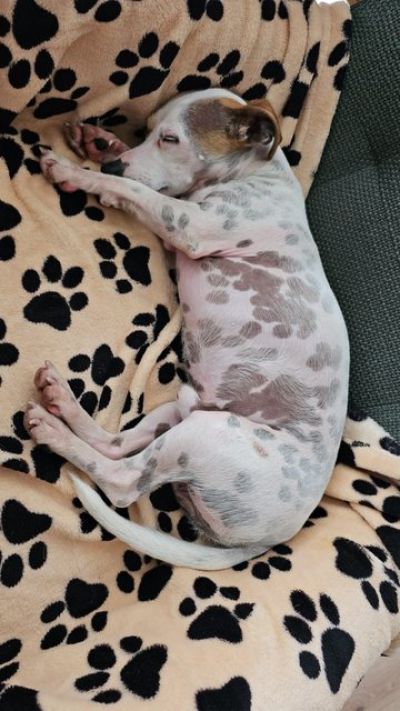 Der arme Kerl wurde danach in die Tötungsstation gebracht, wo er sehr ängstlich war. Deshalb nahm unsere Kollegin KAreen ihn mit zu sich nach Hause, wo er sich zu einem kleinen Sonnenschein entwickelt hat.