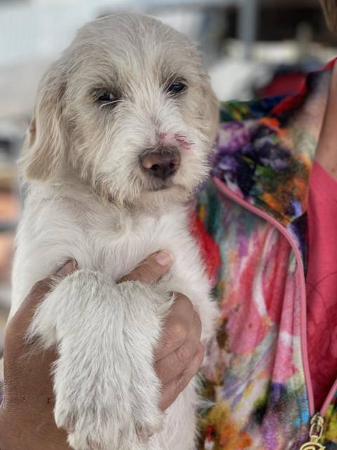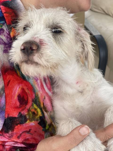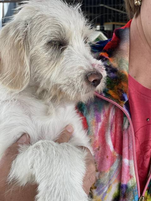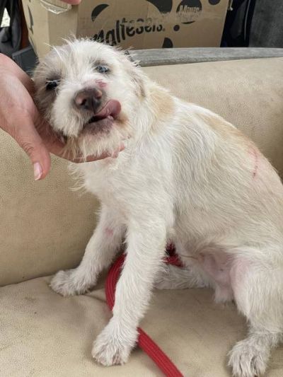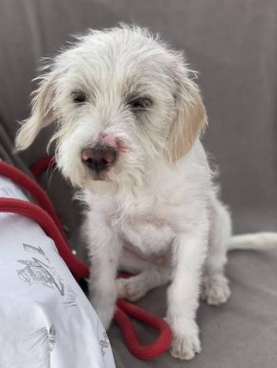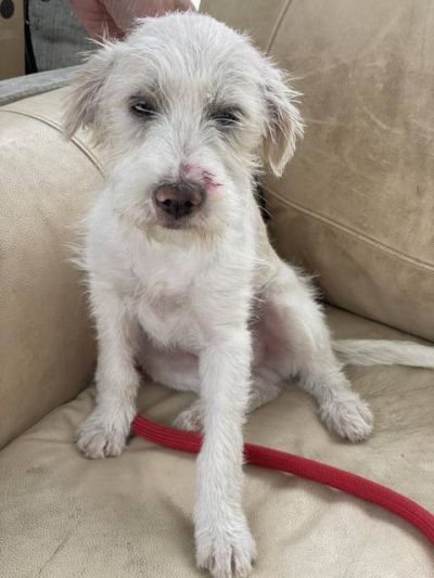 Fido - ein ganz entzückendes Kerlchen wurde völlig verschmutzt und mit Farbe beschmiert im Industriegebiet gefunden. Das Roberts Shelter nahm ihn auf. Er war voller Flöhe und kratzte sich tüchtig. Nun hatte er ein Bad gegen die Parasiten und wurde natürlich dem Tierarzt vorgestellt, alles ist in Ordnung. Fido bekommt jetzt gutes und altersgerechtes Futter und wäre halt nur gerne nicht im Käfig eingesperrt, deshalb sucht er seine Familie.
