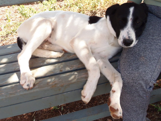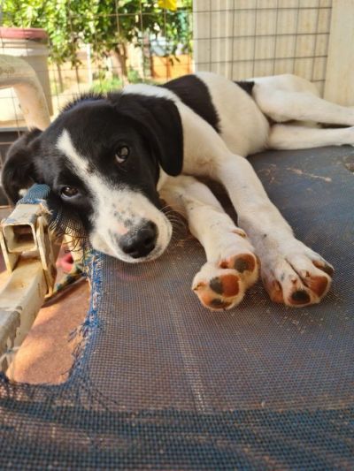 Flora ist nicht so schüchtern wie ihre Schwester, aber auch sie nimmt sich einen kurzen Moment, wenn fremde Menschen zu ihr kommen. Flora ist eine hübsche Hündin, die mittelgroß werden wird und sich bestimmt über eine eigene Familie freuen würde, die mit ihr auch in die Hundeschule geht und sie lieb hat.