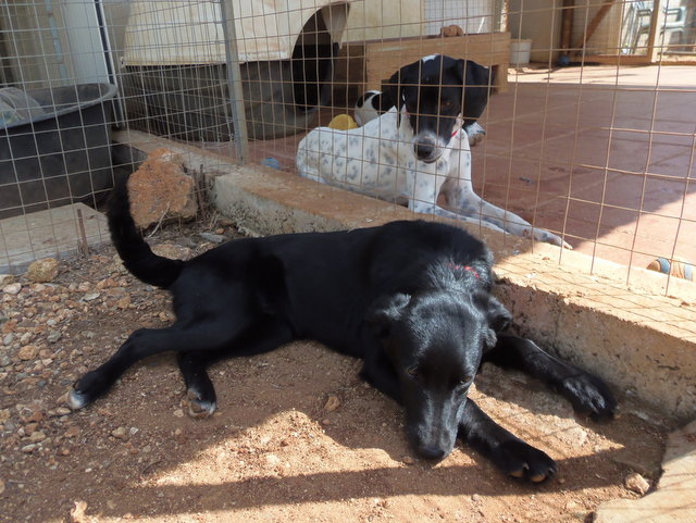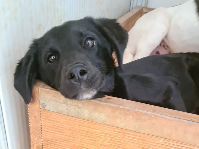 Frida ist eine schwarze, hübsche Hündin, die eher mittelgroß werden wird. Sie ist erst mal schüchtern, aber durchaus freundlich und auch nicht abgeneigt, geknuddelt zu werden. Seit sie bei Rita ist, hat sie schon mehr Vertrauen zu den Menschen gefasst.