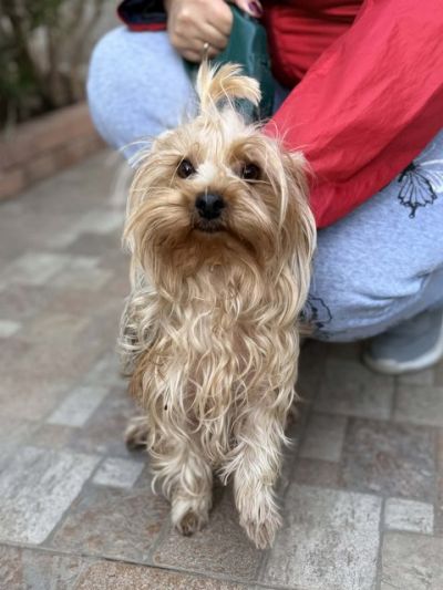 Frida, eine kleine Yorki- Hündin, wurde von einer Dame auf Zypern allein herumlaufend entdeckt.