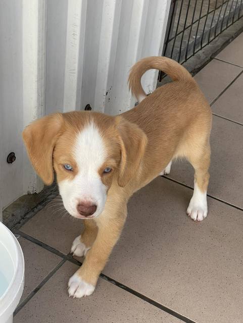 Frieda ist eine hübsche Welpin, die später mal ein mittelgroßer Hund sein wird. Sie ist freundlich, spielt gerne und ist ein aktives Mädchen mit tollen blauen Augen. Auch Sie sucht nun einen neuen Wirkungskreis.