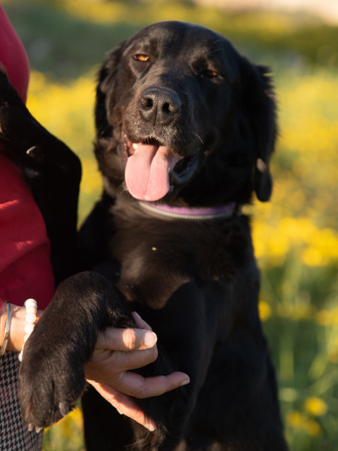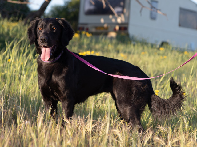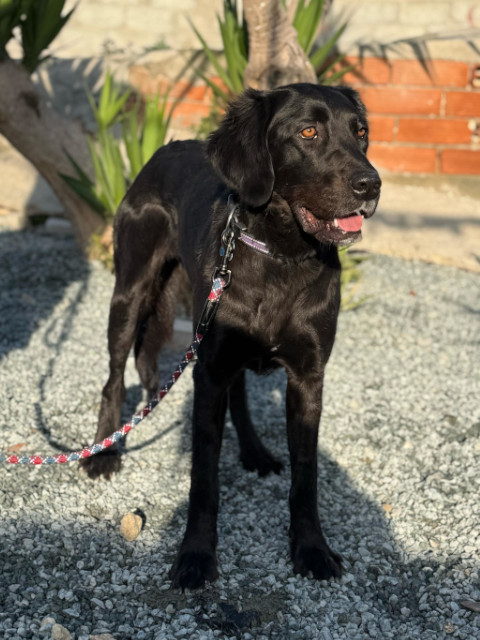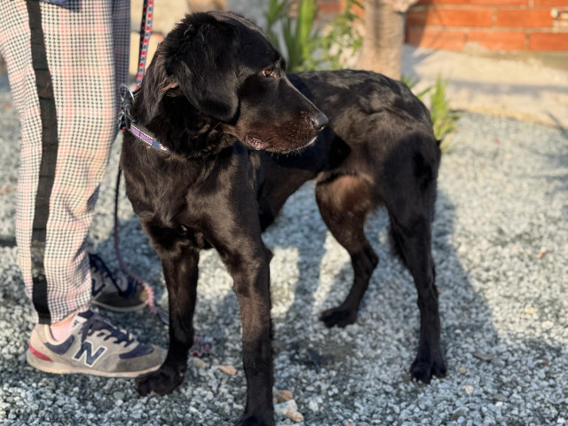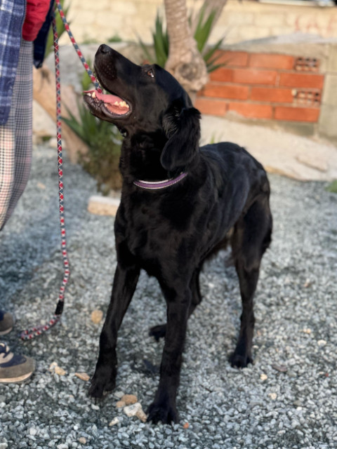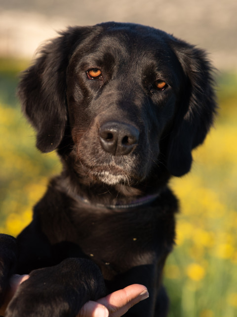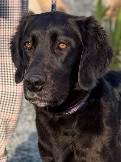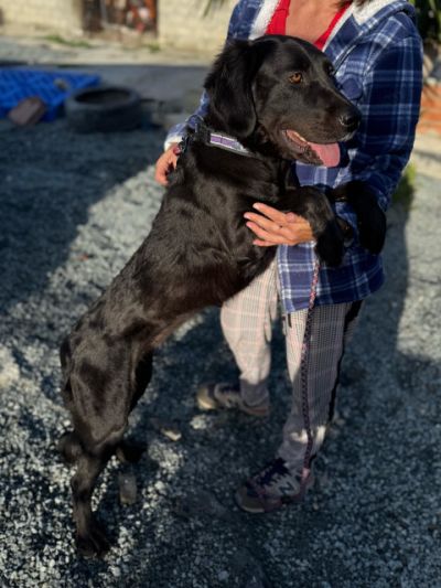 Gipsy eine sehr schöne und lackschwarze Labby-Mix-Hündin wurde aufgegriffen, als sie mit einer weiteren Hündin - die zufällig das gleiche Halsband trug - 10 Tage lang vor einer Schule und in der Nähe der Schule herumschlich. Beide Hündinnen hatten auch keine Chipnummer.