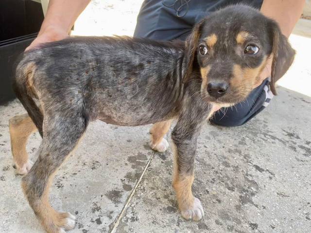 Dieses kleine Wesen war nur noch Haut und Knochen und litt unter einer Flohstichallergie.