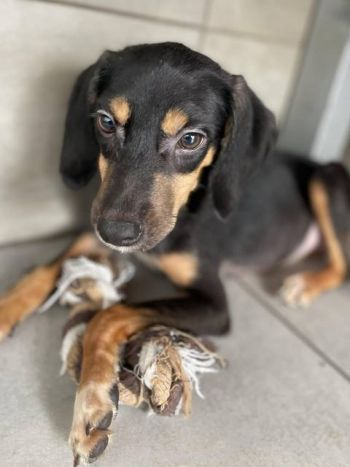 Meine Kollegin, die Lana, nahm dieses arme Wesen zu sich in ihre Welpenstation.