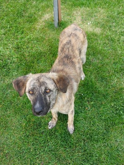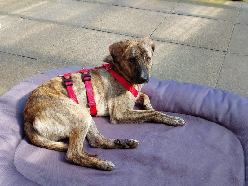 Der wunderschön gestromte Gumi ist der Sohn von Lady. Er war mit seiner Mutter zusammen in der Tötungsstation, als unsere Tierschützerin Viki ihn kennen lernte. Sie nahm die kleine Familie mit in ihrem Shelter in Obhut.
