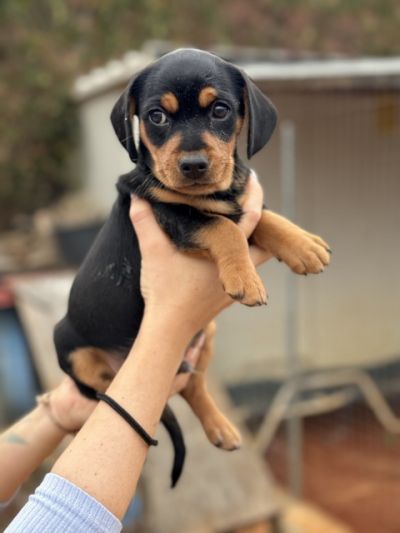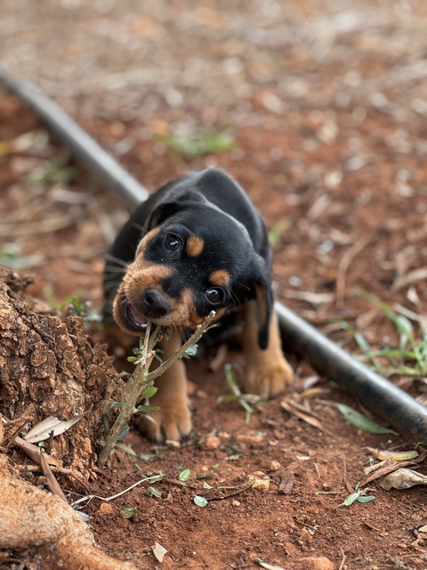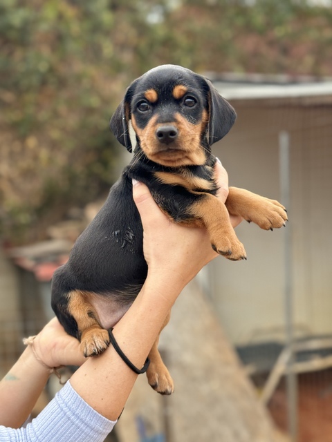 Ein entzückender Welpe, der in Limasol auf Zypern in einem Karton ausgesetzt gefunden wurde.