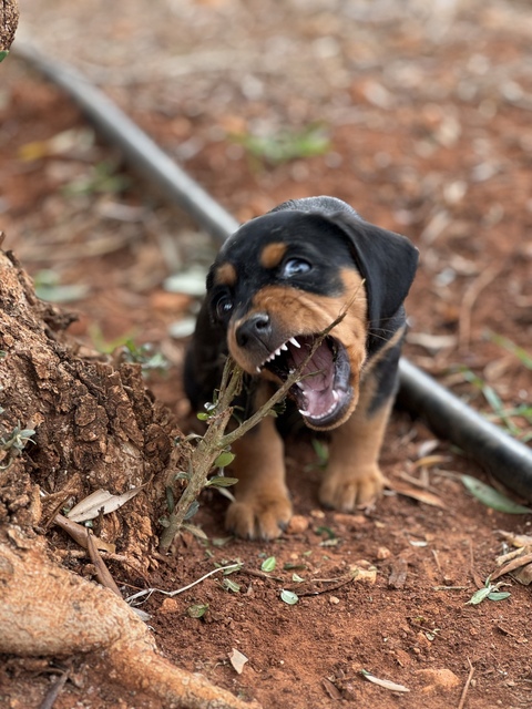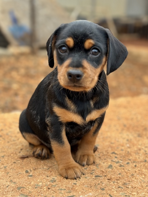Hajo ist der einzige Welpe, der diese Fellfarbe hat. Alle 7 Welpen werden mittel- bis größer werden und wiegen zurzeit etwa 4 kg