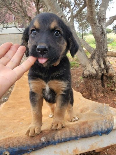 Die Mama von Halloumi hat eine Schulterhöhe von 45 cm. Somit werden wohl auch die Welpen mittelgroß werden.