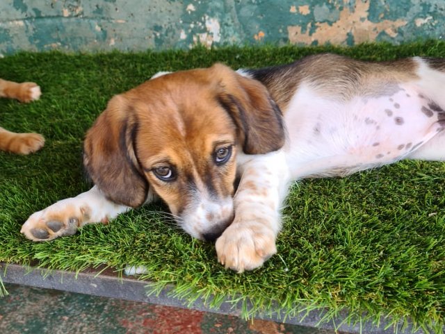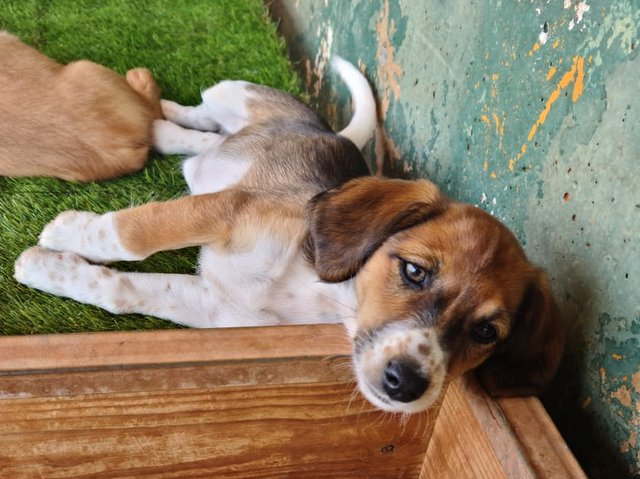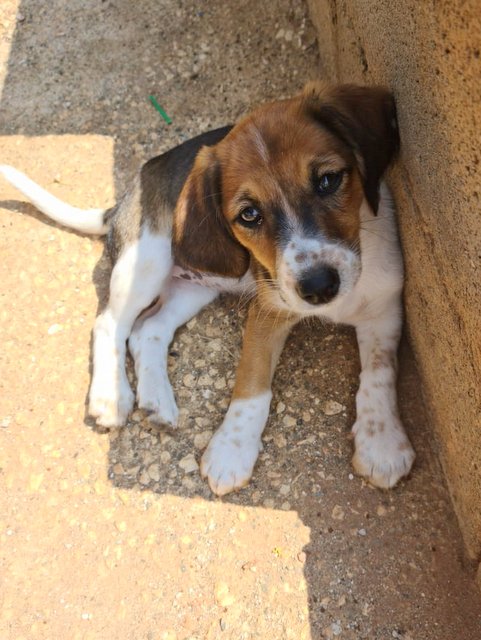 Hatti ist eine süße Welpin,dreifarbig mit sehr hübschen braunen Augen. Sie ist etwas kleiner als ihre Geschwisterchen, tobt aber genauso gerne:-))