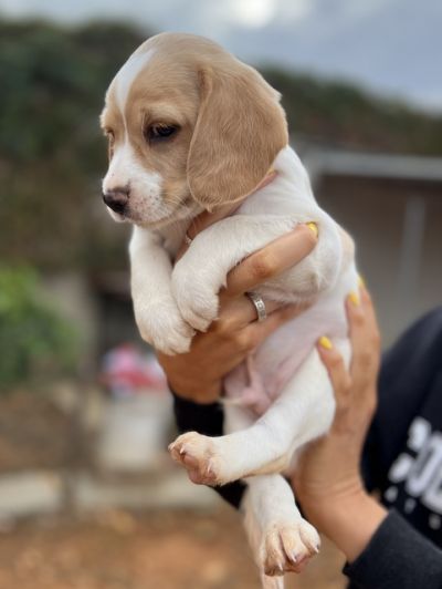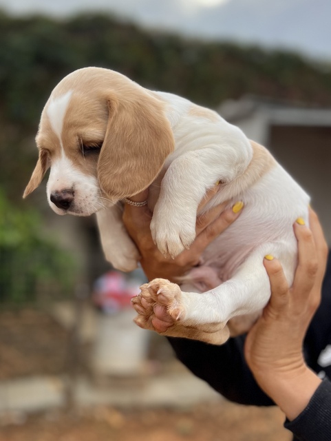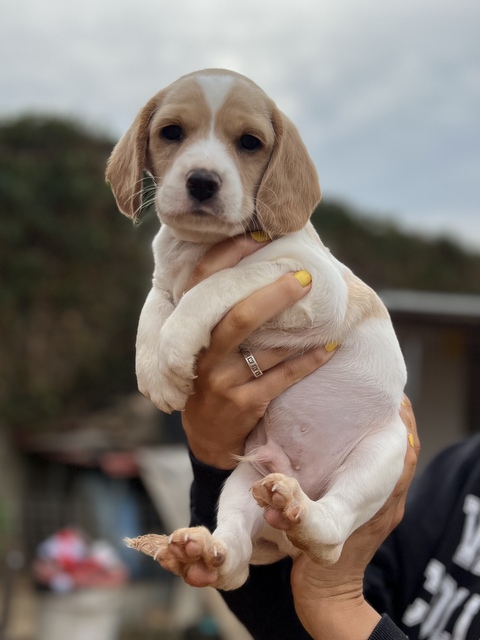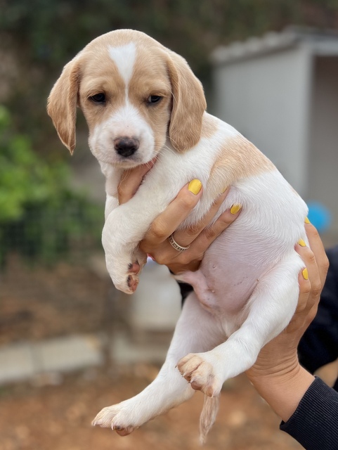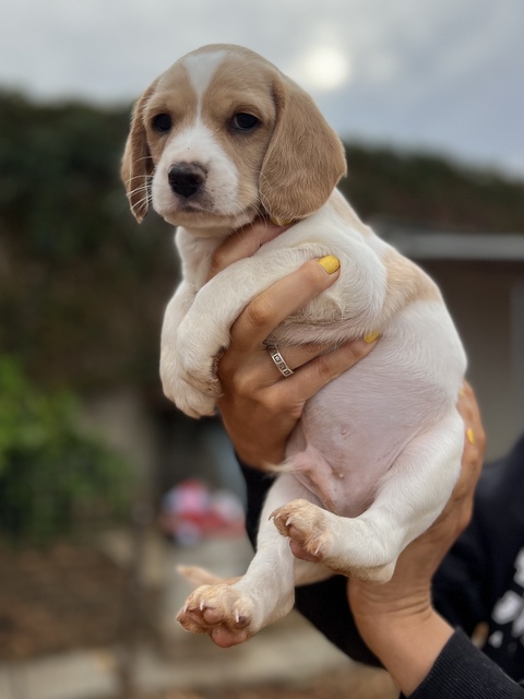 Hector hat ein hübscher cremefarbenes Fellkleid. Alle 7 Welpen werden mittel- bis größer werden.