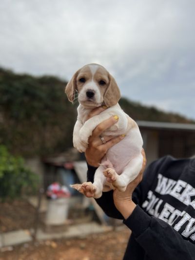 Ein entzückender Welpe, der in Limasol auf Zypern in einem Karton ausgesetzt gefunden wurde.