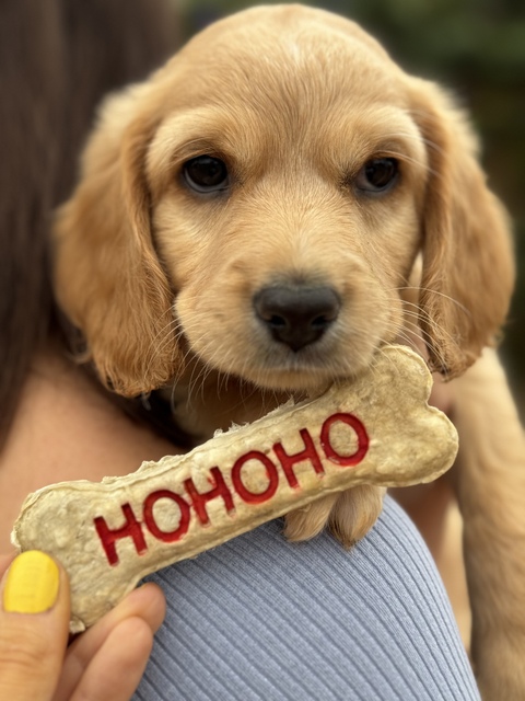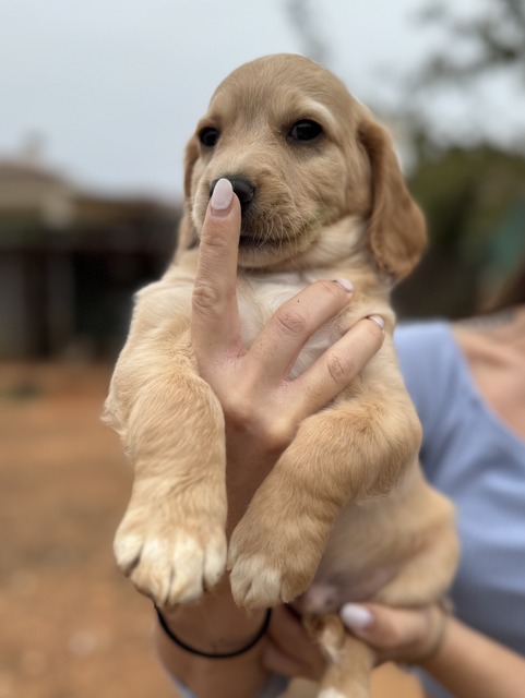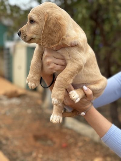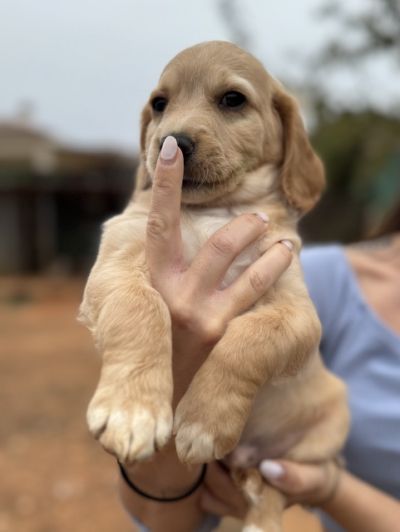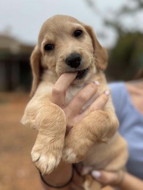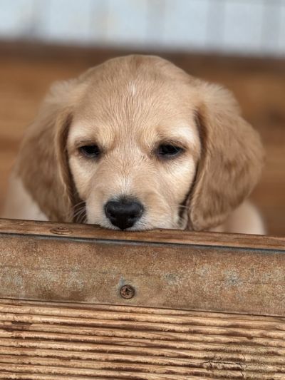 Henry ist einer von den Welpen mit einer hellen Fellfarbe. Alle 7 Welpen werden mittel- bis größer werden. Sie wiegen zurzeit 4 kg. Es scheinen Retrieverwelpen zu sein, so auch die Aussage des Tierarztes. Er geht schlafen, wenn er müde ist vom Spielen.