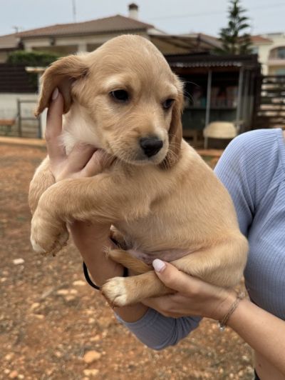 Ein entzückender Welpe, der in Limasol auf Zypern in einem Karton ausgesetzt gefunden wurde.