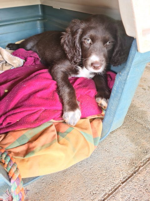 Sie ist geimpft, gechippt und entwurmt. Mit ihrem Impfpass dürfte sie ab dem 30.5. nach Deutschland fliegen. Dann ist sie 4 Monate alt.