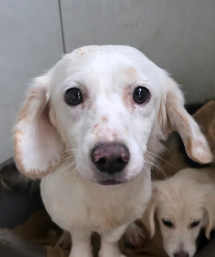 Zu dieser Zeit war nur noch ein Welpe da, Holly und ihre Mama Eni.